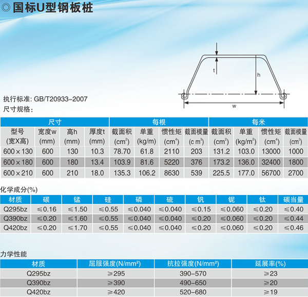600系列熱軋U型鋼板樁
